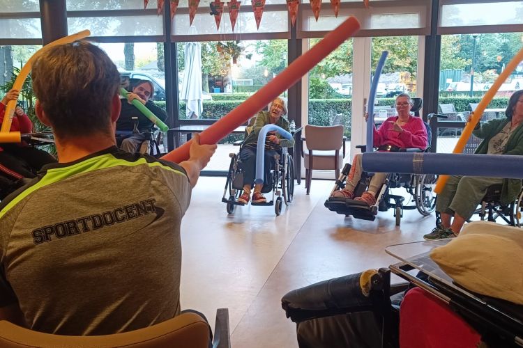 In zorginstellingen begeleiden we structurele beweegmomenten en bieden beweegmogelijkheden om zelfstandig, of met familie en/of bekenden, in beweging te blijven. Voorop staat dat de beweegmomenten aansluiten op de behoeften en mogelijkheden van de deelnemers. Onze beweegprofessionals, sportkundigen/ beweegagogen/ MBvO trainers, staan met veel enthousiasme voor de groep om samen een mooi beweegmoment neer te zetten.